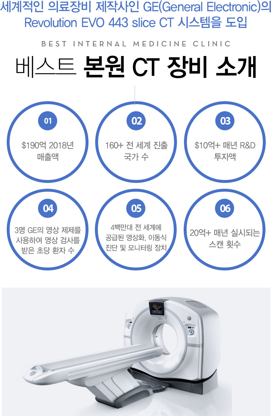 Ʈ Ƿ ۻ GE(General Electronic) Revolution EVO 443 slice CT ý Ͽϴ. Key Facts $190 2018 160+ $10+ ų R&D ھ 3 GE Ͽ ˻縦 ʴ ȯ 4鸸 迡 ޵ ȭ, ̵ ͸ ġ 20+ ų ǽõǴ ĵ Ƚ