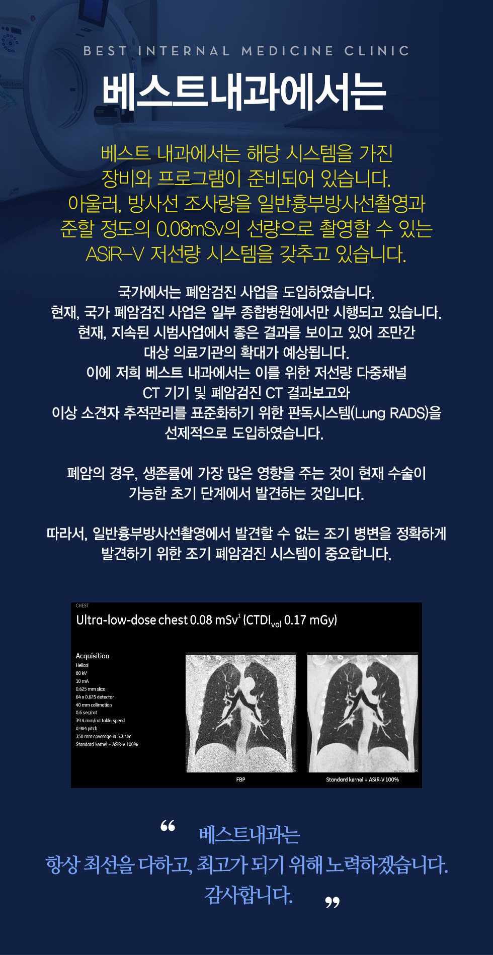 ̿ , ϰ Ͽϴ. , ϰ Ϻ պ ǰ ֽϴ. , ӵ ù ̰ ־ Ƿ Ȯ밡 ˴ϴ. ̿ Ʈ ̸ ä CT ϰ CT ̻ Ұ ǥȭϱ ǵý(Lung RADS) Ͽϴ